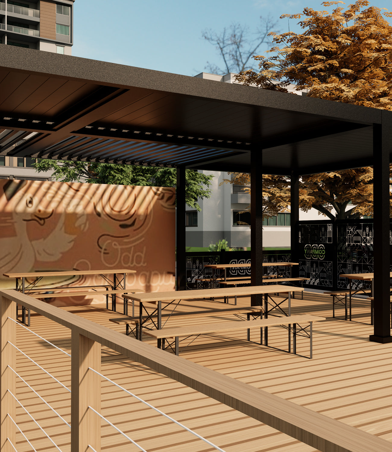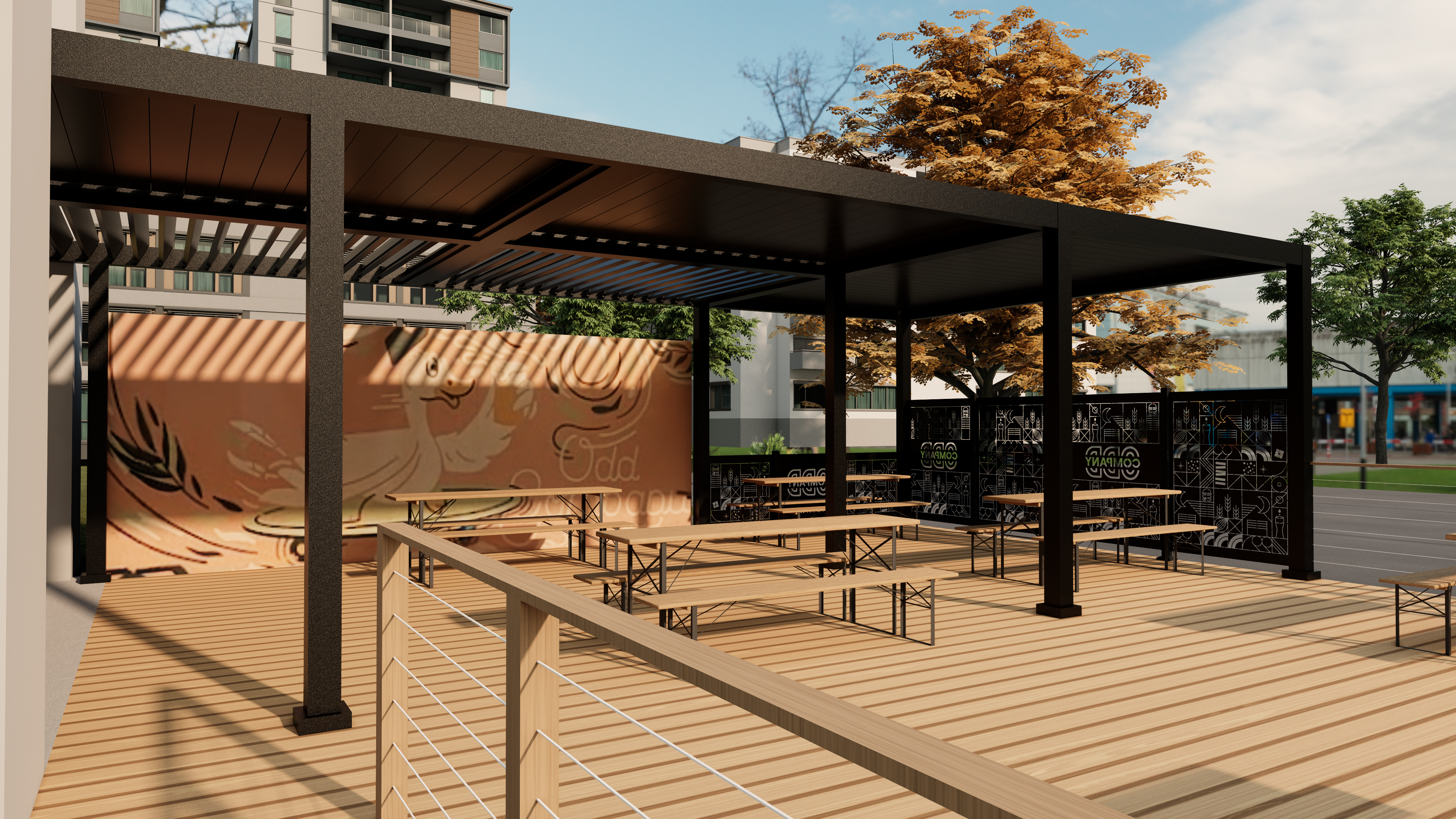 This new pergola enhances Odd Company’s outdoor seating, offering a versatile, stylish space for all weather. We’re proud to support local businesses and look forward to the positive impact on their patrons.