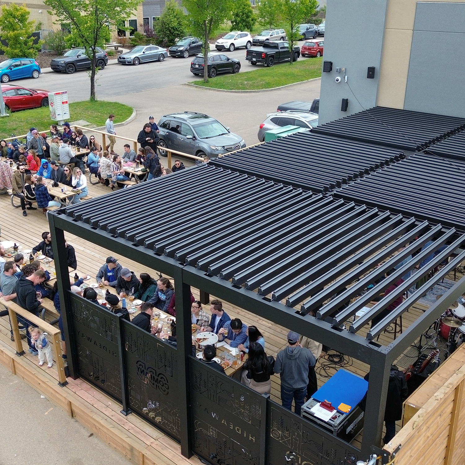 The installation of our first TitanShade Louvered Pergola at Odd Company Brewery! As a beloved local business in Edmonton, Odd Company has been a community staple, bringing people together with exceptional craft beers and a warm, welcoming atmosphere.