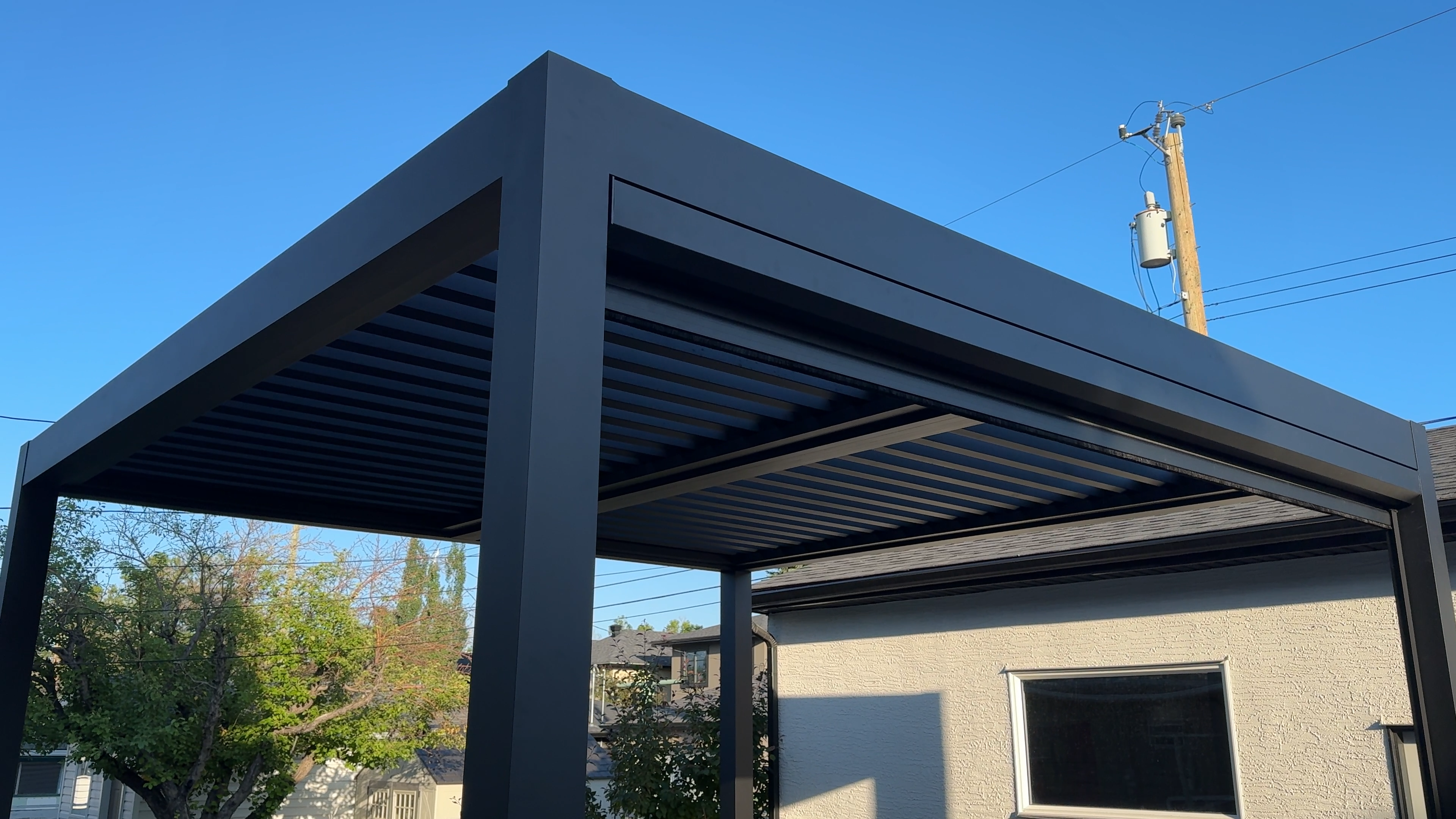 We're excited to share the news about our first residential TitanCover Louvered Pergola installation in Calgary! This home now has a beautiful new outdoor space with a Phantom Screen attachment, perfect for all kinds of weather.