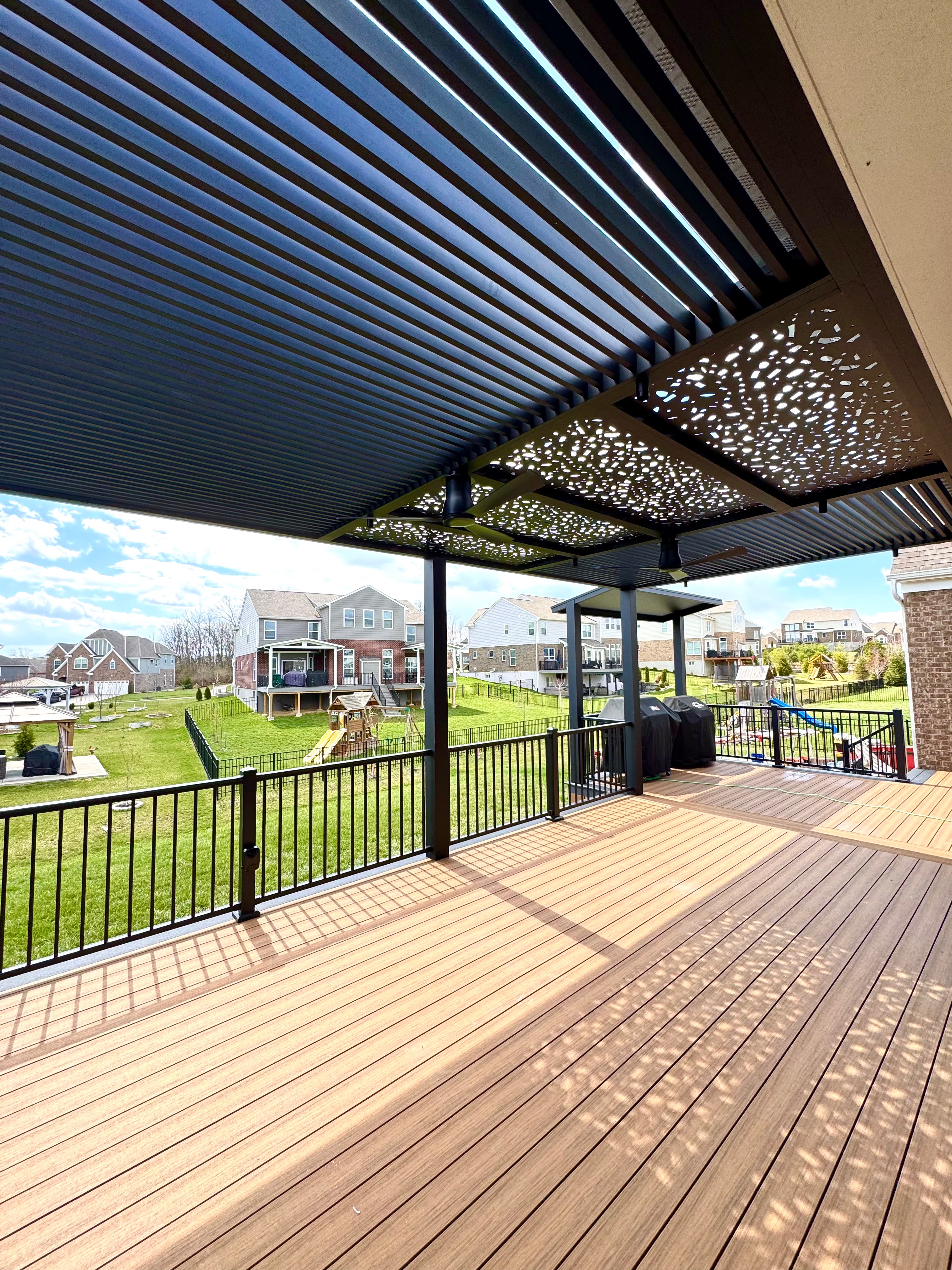 We created a fully customized LiteShade pergola system, paired with a custom LineTu solid BBQ cover and Hideaway privacy panels to match. The result is a cohesive and functional outdoor space that elevates both style and usability. With clean lines and durable materials, this tailored setup delivers a seamless blend of modern design and practical shelter—perfect for year-round backyard living.