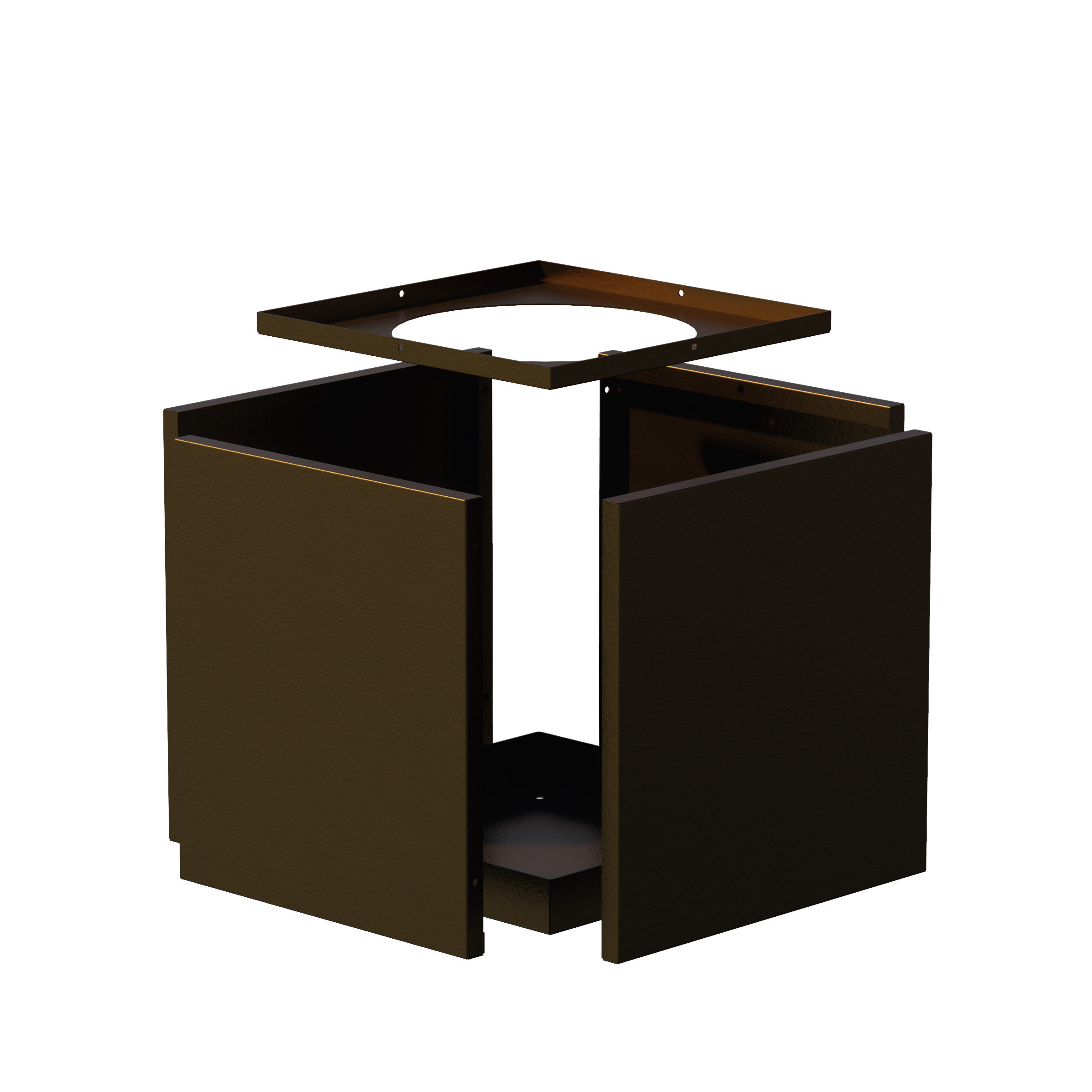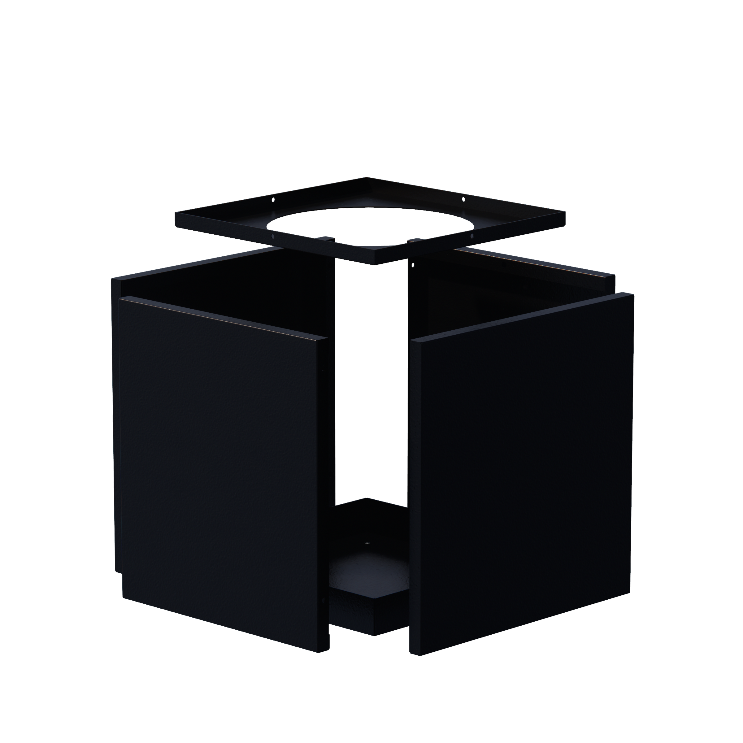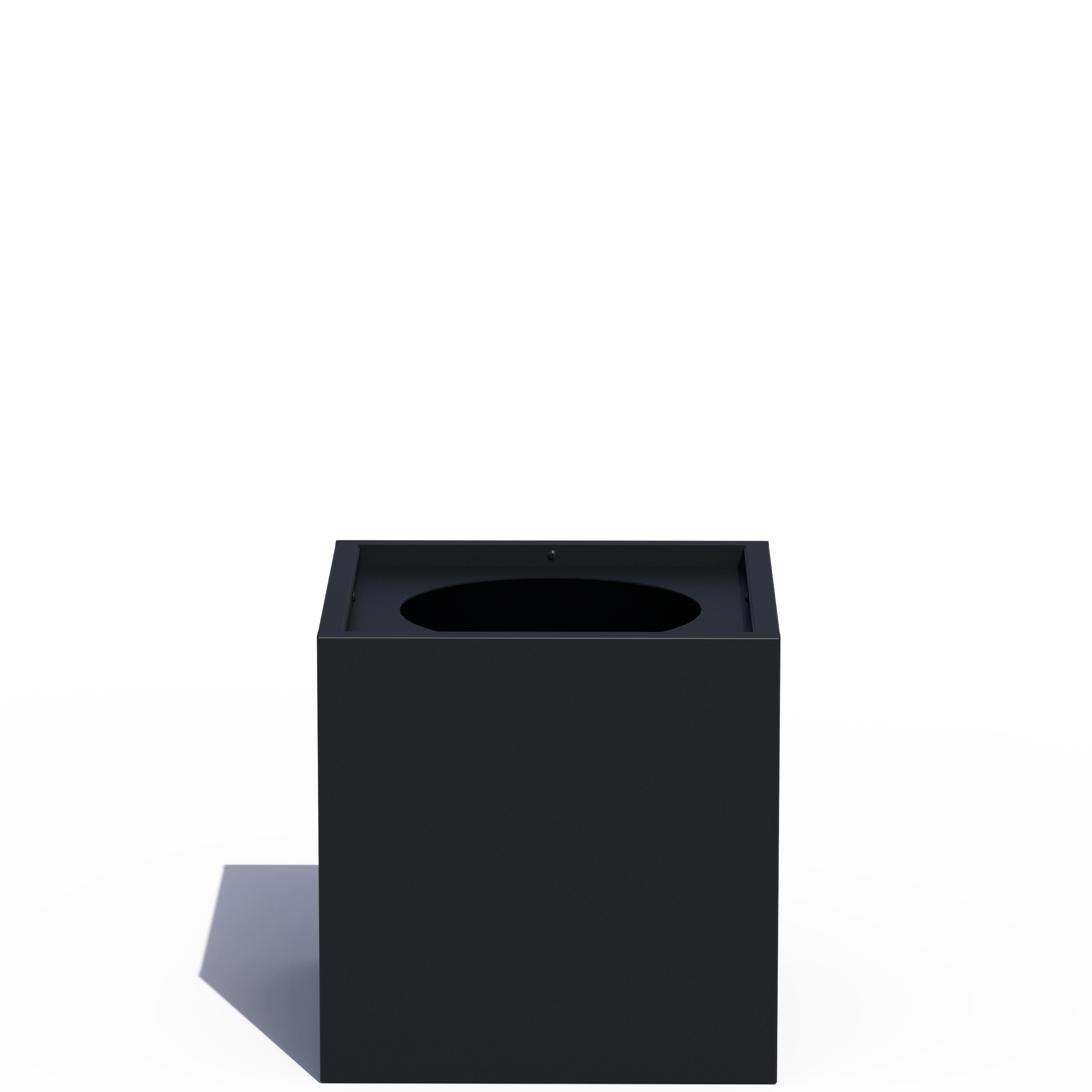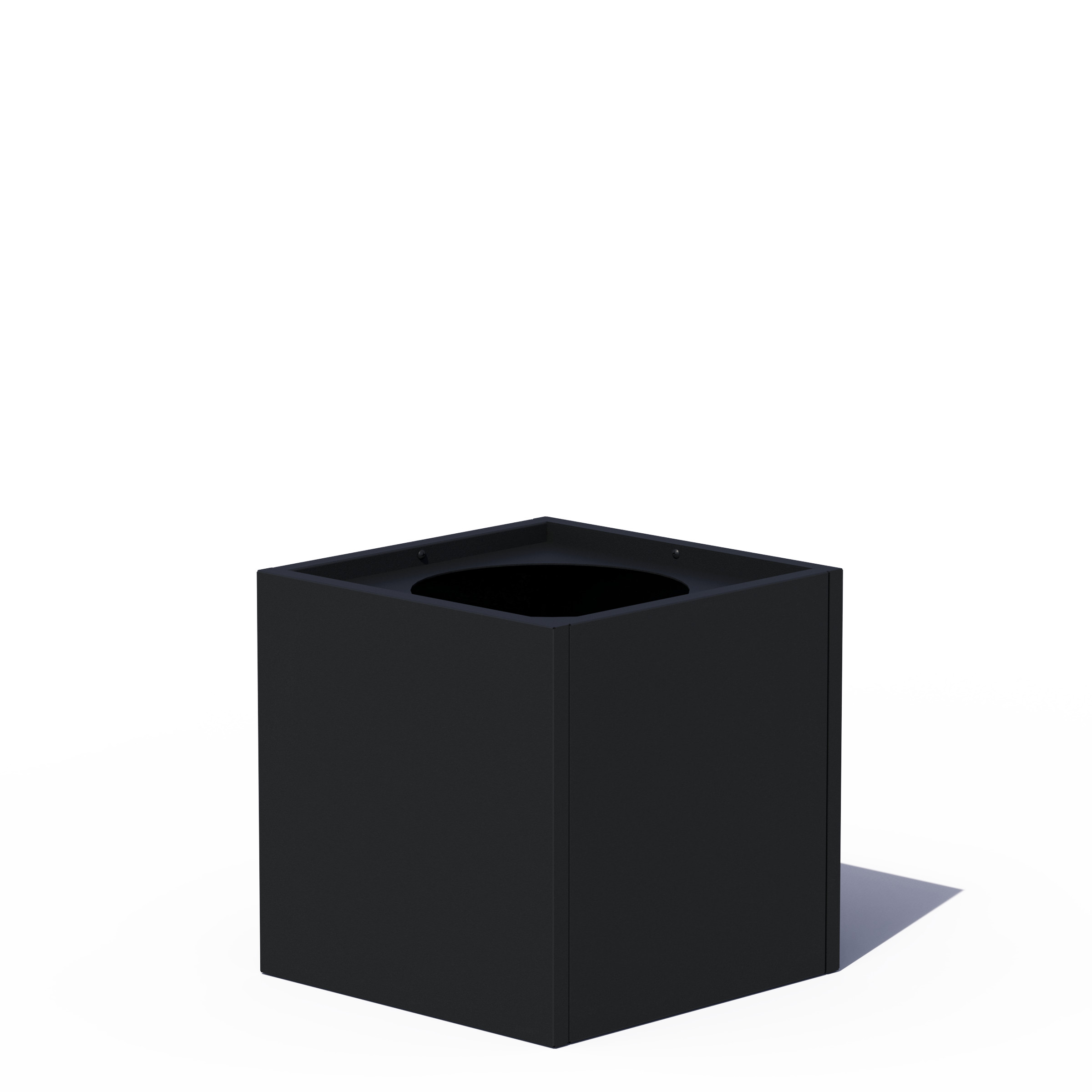 Shown here in a cube shape and powder coated in Textured Black.