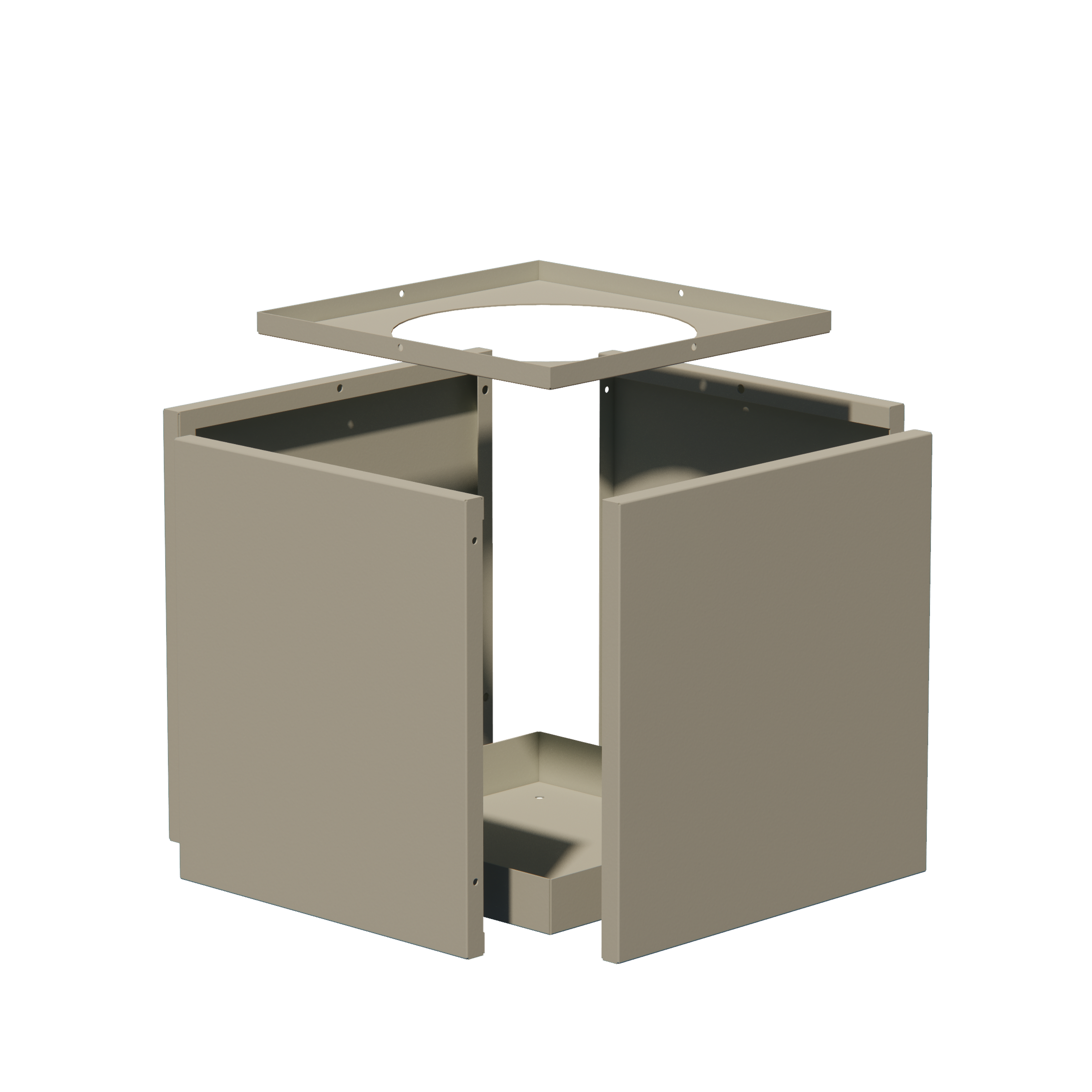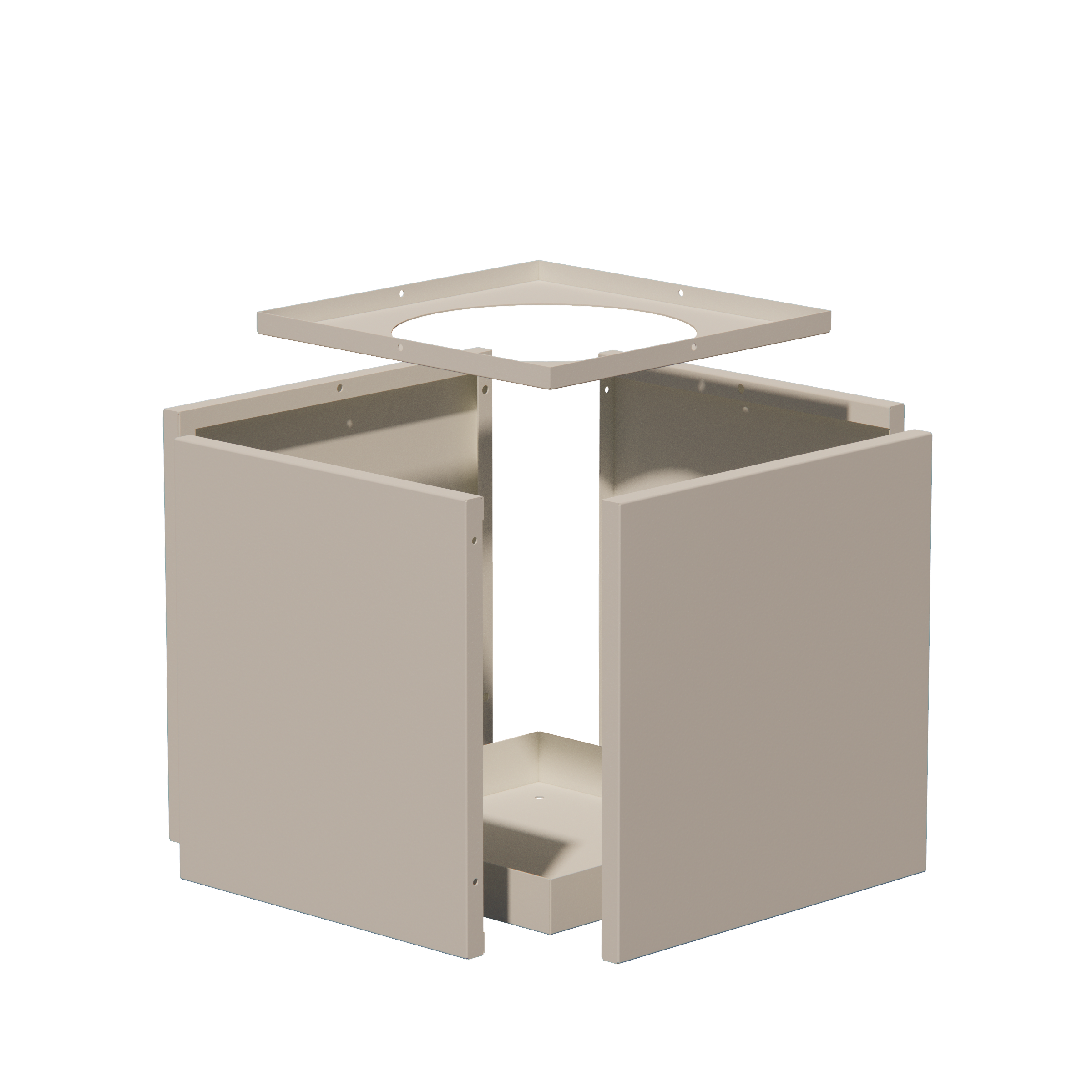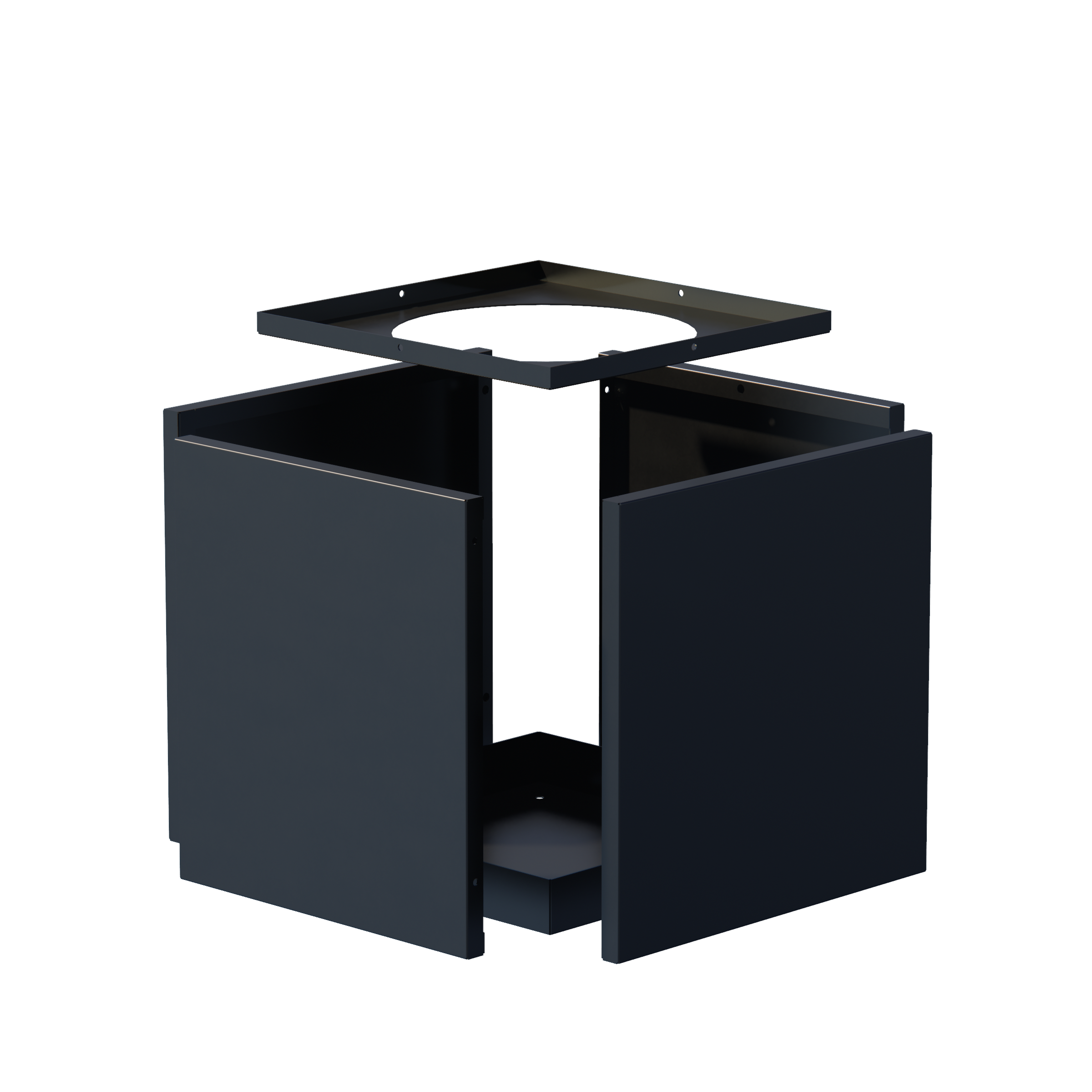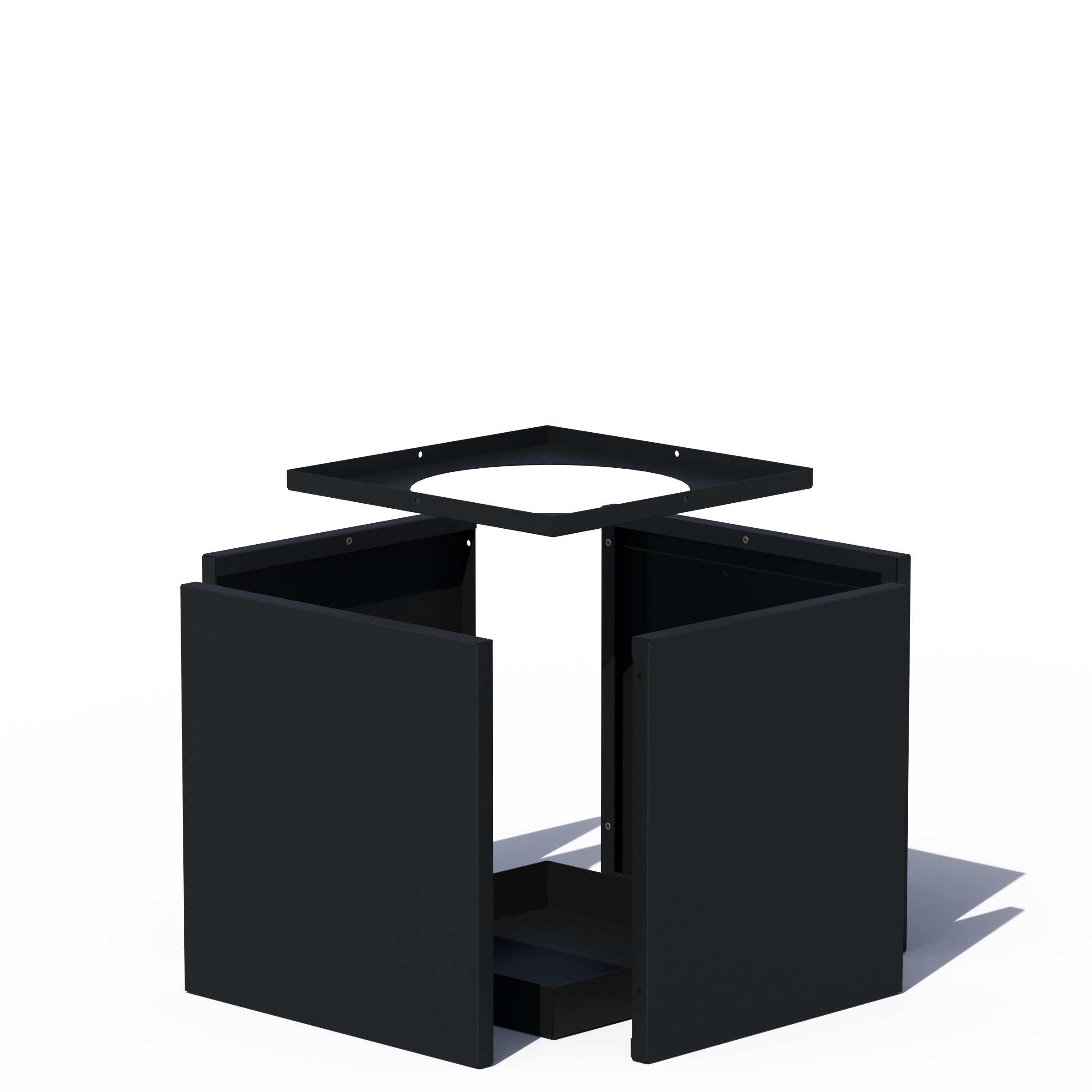 Shown here in a cube shape and powder coated in Textured Black.