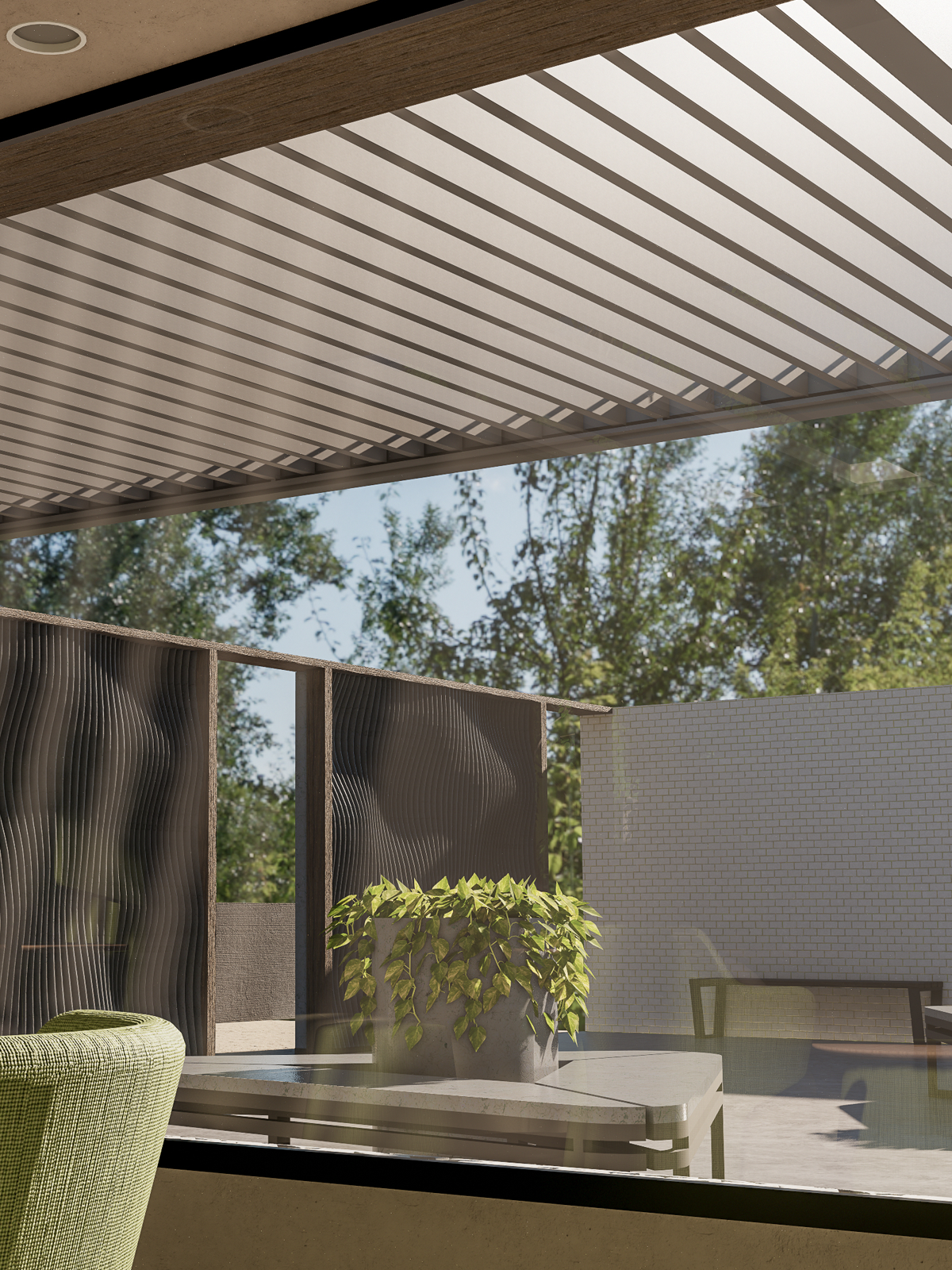 The TitanCover™ System offers watertight shelter from extreme sunlight, heavy rain, and snow. Its advanced sealing technology ensures complete dryness and shields your space from UV rays, preventing sun damage to furniture and flooring.