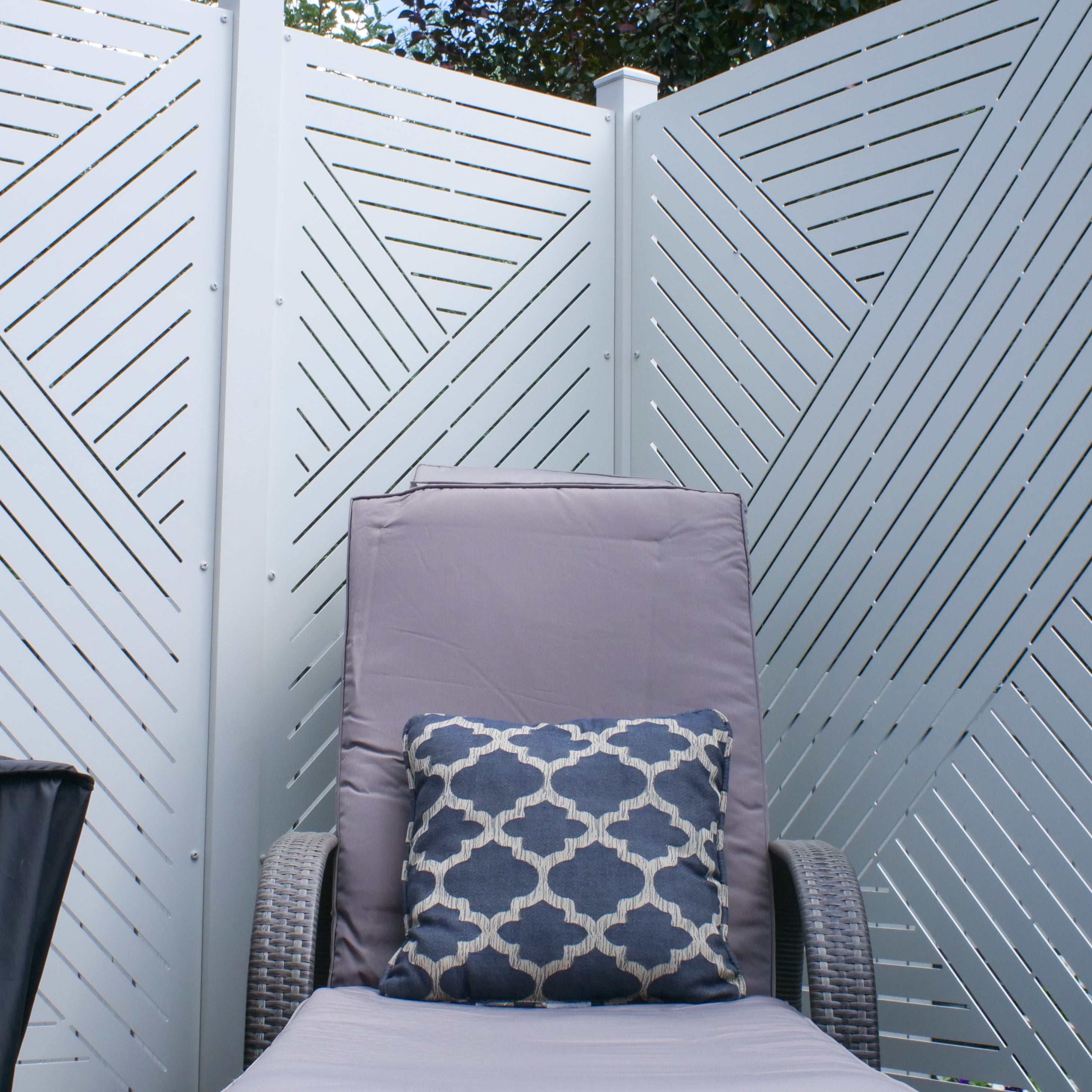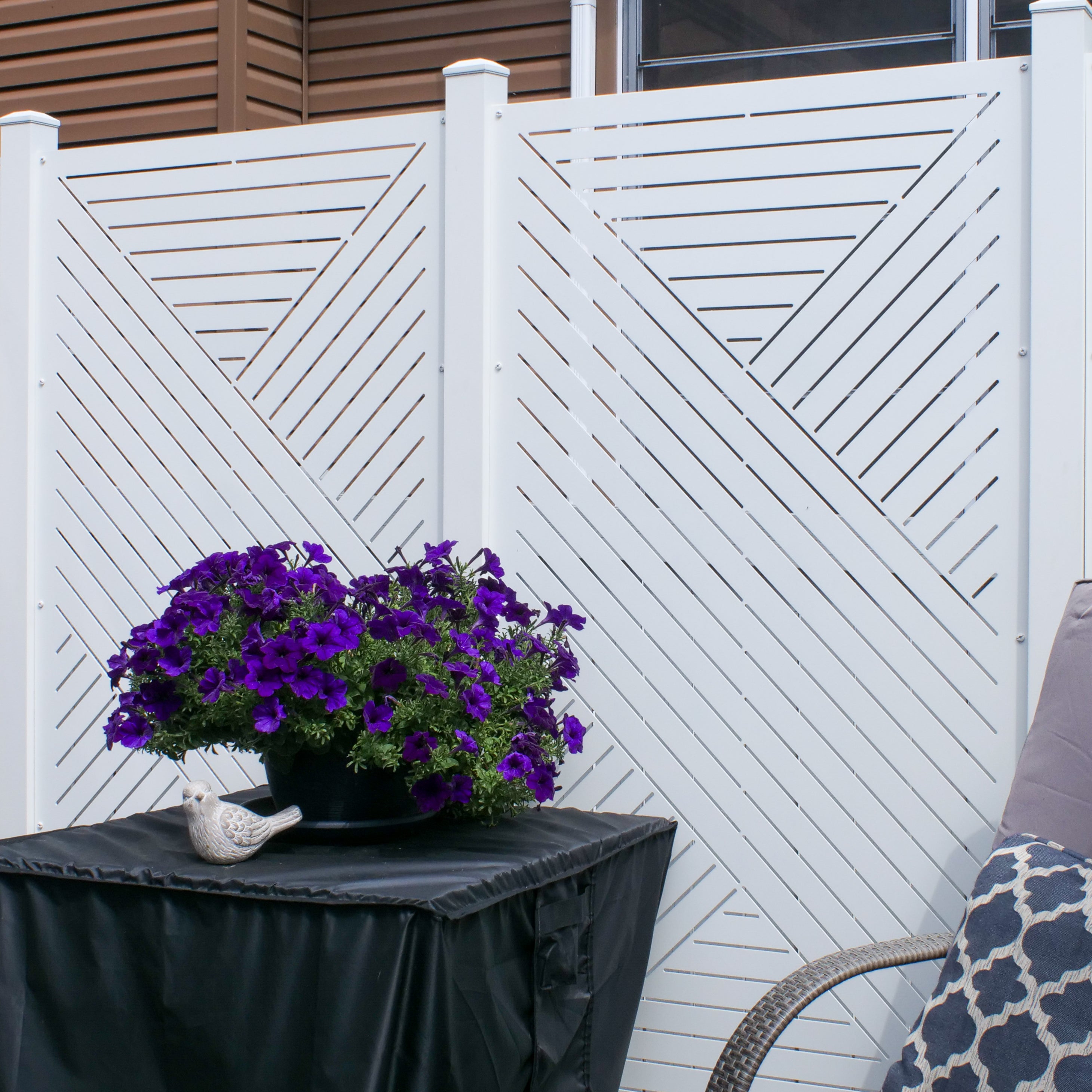 This two-story deck was elevated to new levels of sophistication with the installation of sleek white Hexx privacy screens. These screens are designed to provide the perfect blend of seclusion and openness, effectively blocking views from the walking trail behind the home while still allowing the homeowners to enjoy their outdoor space. The crisp white panels offer a modern and clean aesthetic that enhances the deck's overall appearance, creating a stylish barrier without compromising the inviting and airy atmosphere of the space.