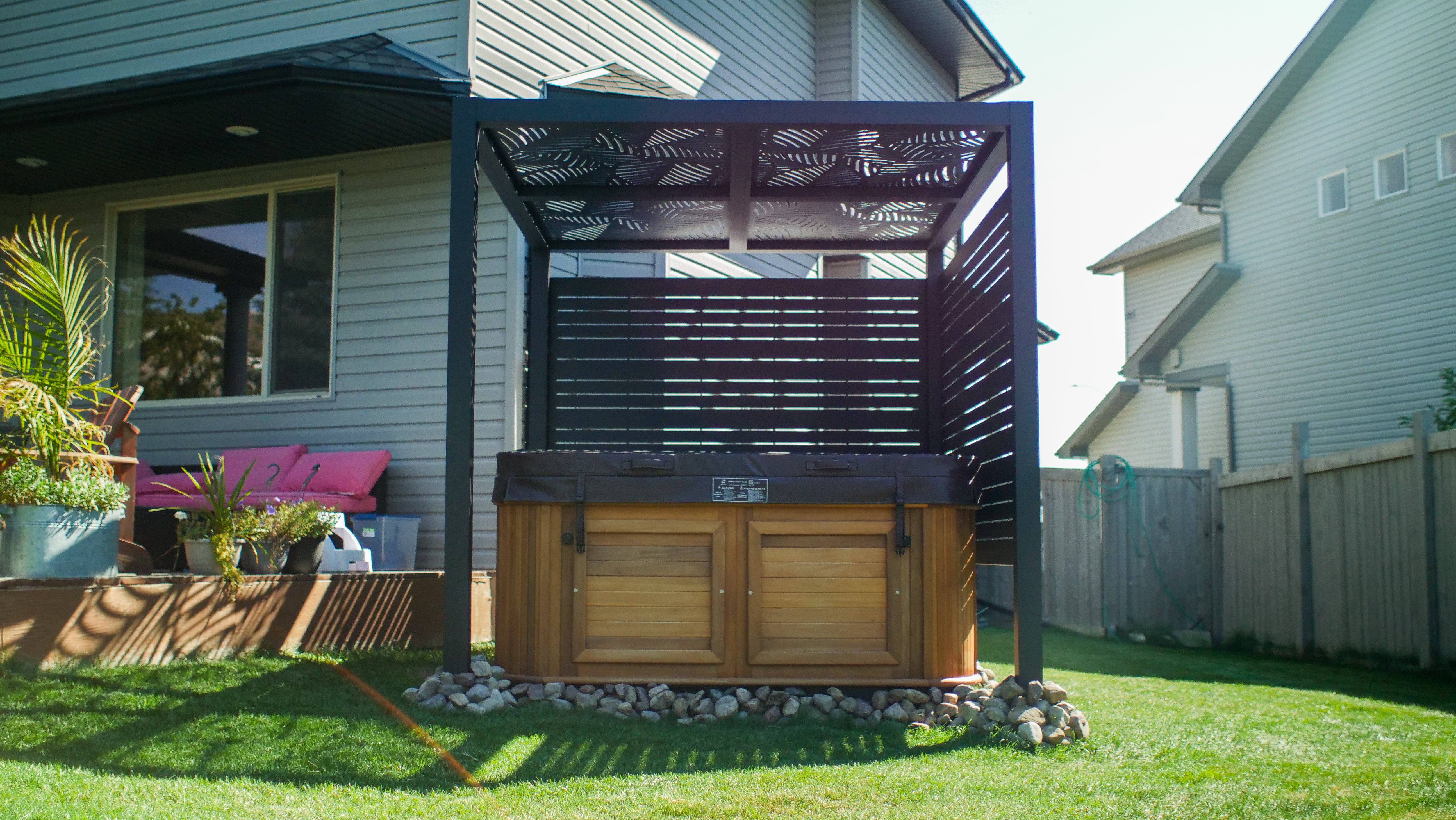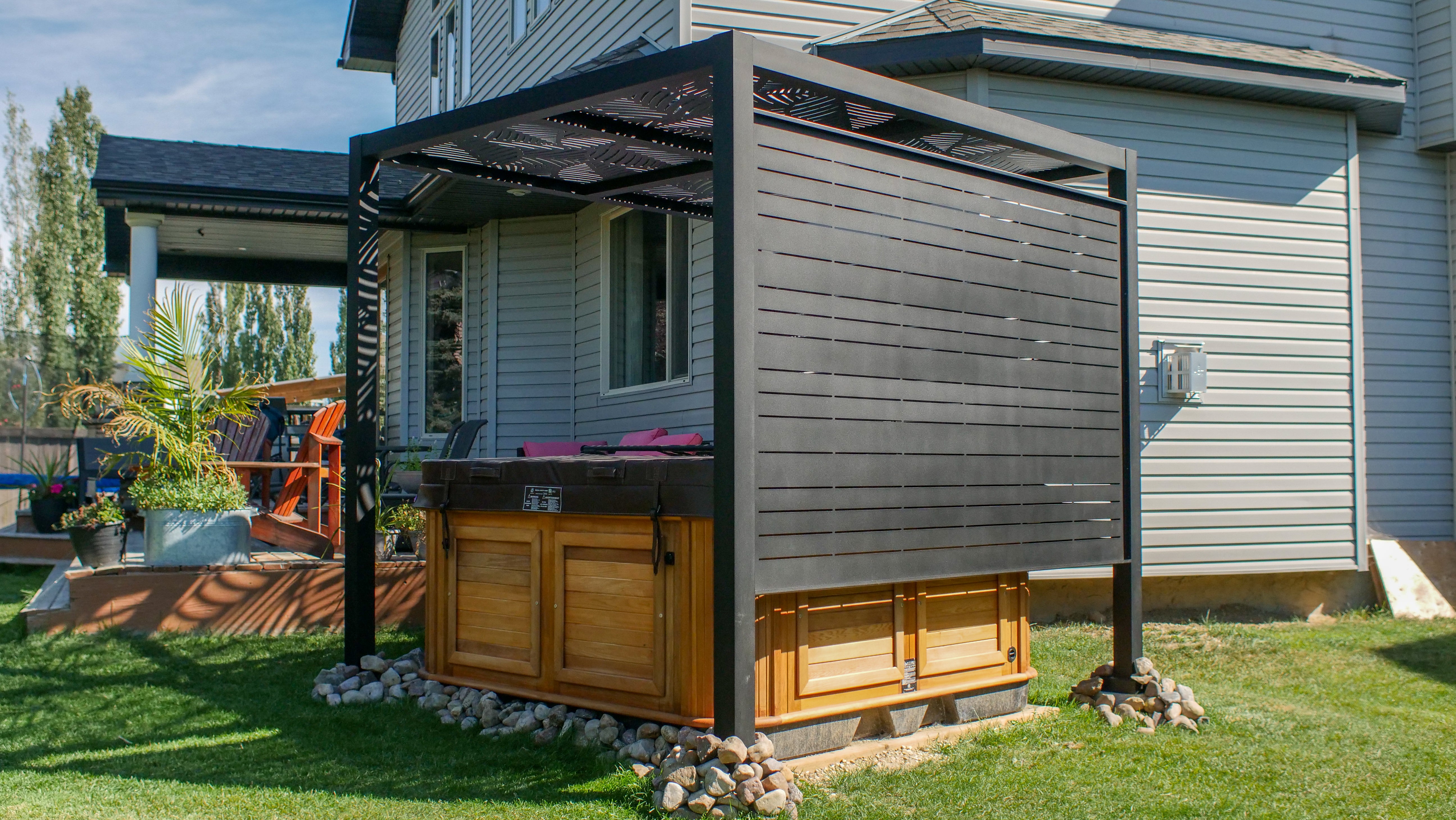 We recently had the opportunity to enhance a hot tub area with a LiteShade pergola, featuring custom side panels and mesh screens on top. This installation strikes an ideal balance between seclusion and openness, ensuring the homeowners can enjoy their hot tub in privacy while still soaking in the views of their surroundings.